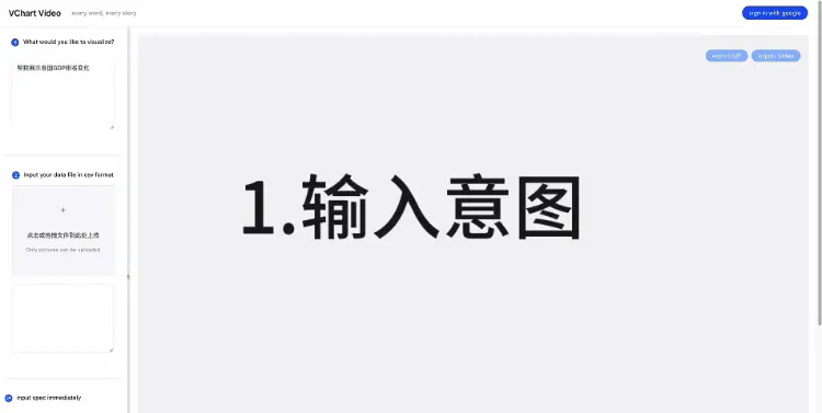 我们做了这些基础研发之后,觉得如果和人工智能结合,图表的应用流程可以有更简便的方式,也许用户只需要告诉我们他们想要什么就可以了。我们设想了一个初级的原型: