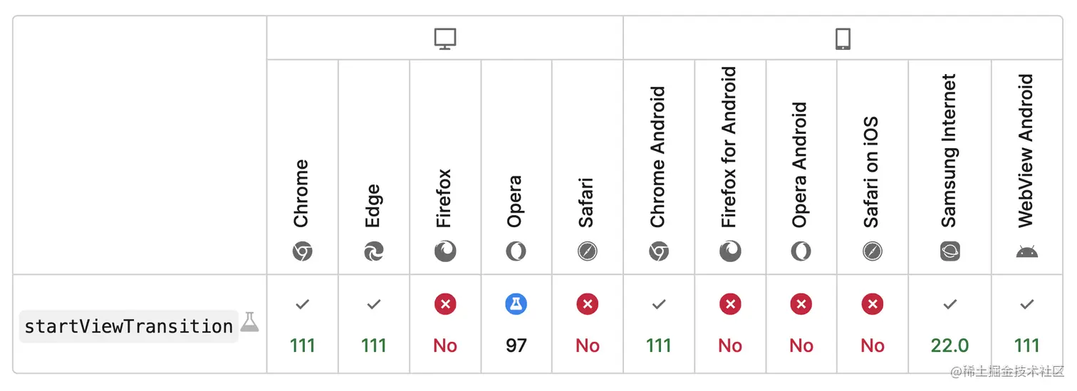 当前,View Transitions API的兼容性并不好: