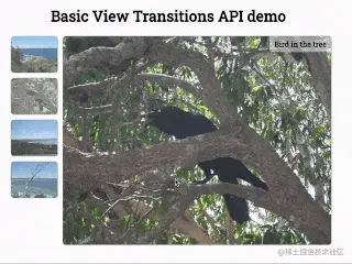 什么是视图切换?以view-transitions Demo举例。这是个简单的相册Demo,点击左边图片缩略图,右边会显示大图: