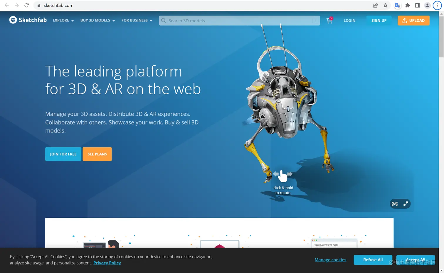 Sketchfab是一个在线3D模型展示和分享平台,提供多种3D模型格式转换服务,包括OBJ、STL、Colada等格式转换,用户可以通过网站或移动应用程序上传3D模型,并将其转换为不同的格式以便在Web、AR和VR环境中使用,Sketchfab的用户界面简洁易用,但在某些情况下可能需要付费才能使用高级功能。