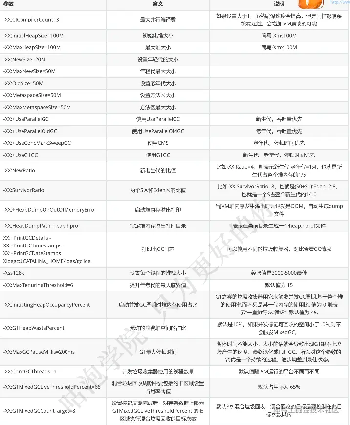 比如:-XX:+UseConcMarkSweepGC表示启用CMS类型的垃圾回收器,-XX:+UseG1GC表示启用G1类型的垃圾回器