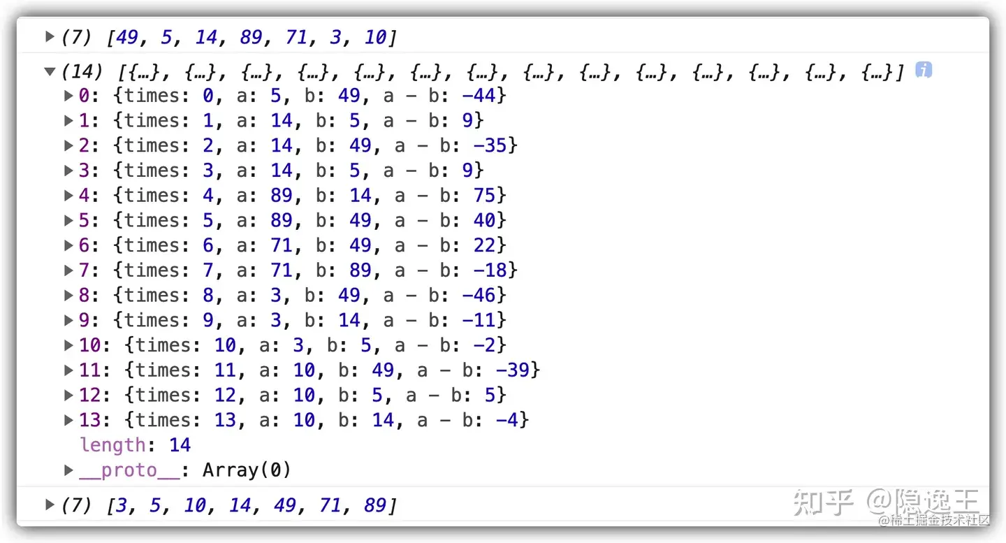 res.push({times, a, b, "a - b": a - b});