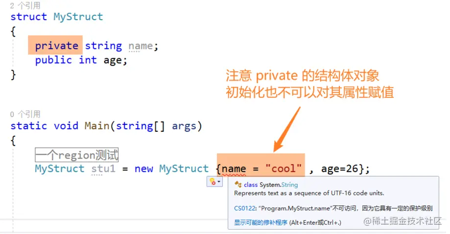 public string name { get; private set; } 如果要 对一个 get 或者 set 进行改装: