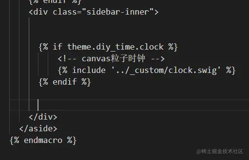 sider-inner的div块中,放在div块的位置决定时钟样式的展示位置。我选择放置在尾部,看着效果好点。
