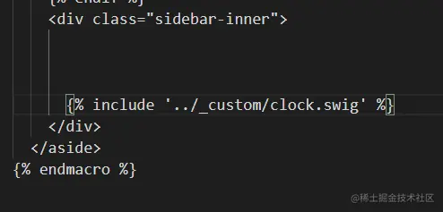 在博客目录\themes\next\layout_macro\sidebar.swig尾部中引入:
