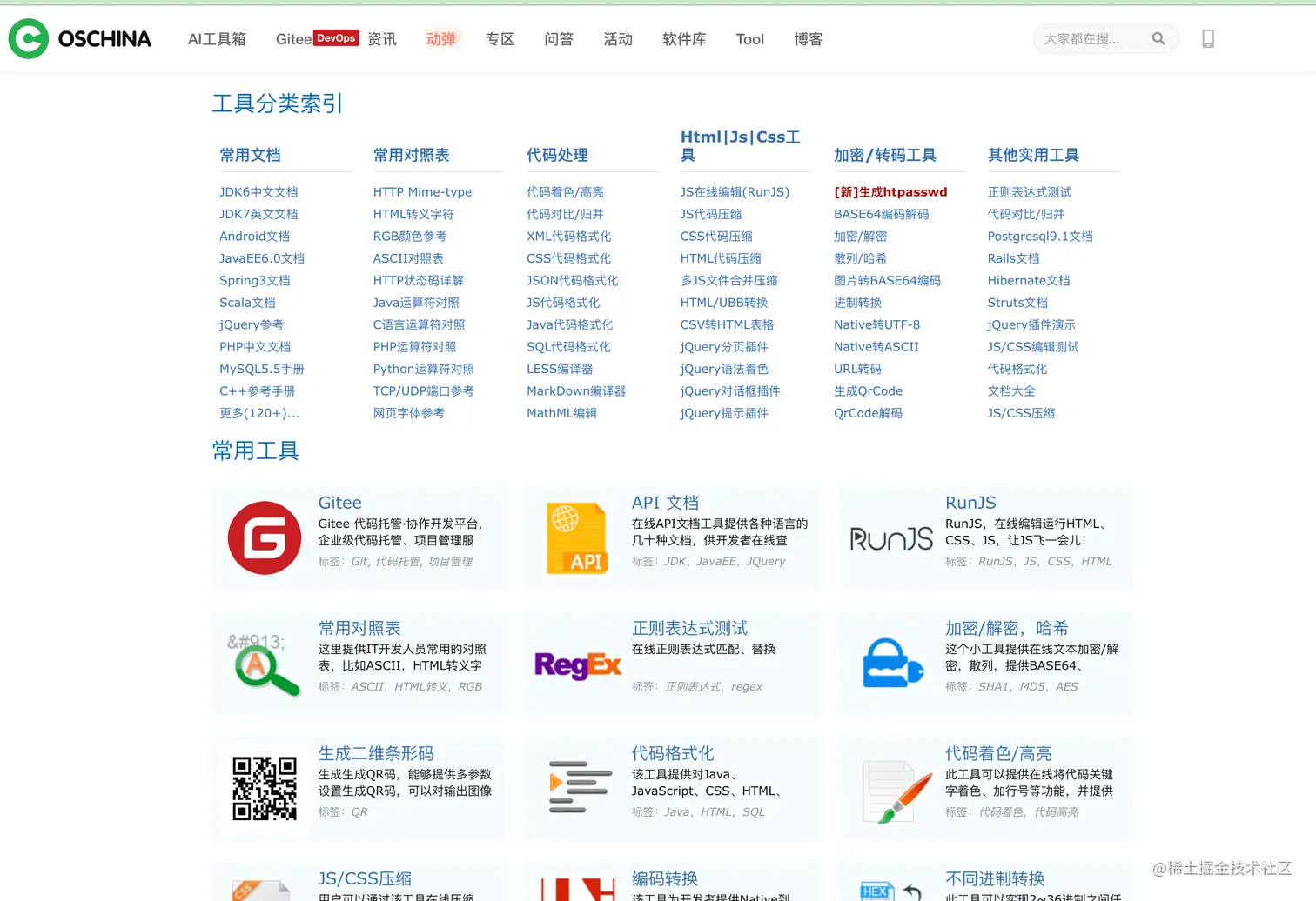 这个网站比较适合程序员,大部分的工具分类都和技术有关,比如代码处理、Html|Js/Css工具、加密/转码工具、常用对照表等(包含HTTP Mime-type、RGB颜色参考、ASCII对照表、Java运算符对照、C语言运算符对照表等等)。