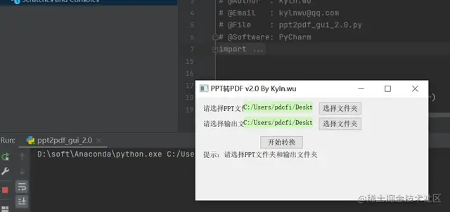 代码运行之后,本地会出现下面的UI界面,选择PPT文件夹即可,然后再选择输出文件夹,傻瓜式的操作,点击开始转换就可以开始进行转换了。