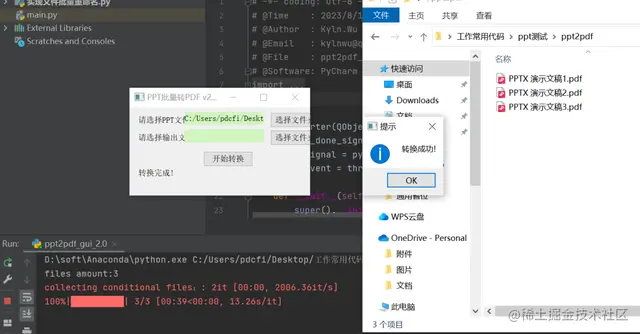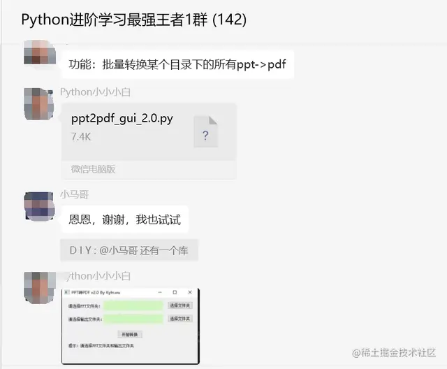 前几天在Python最强王者群【Python小小小白】分享了一份Python自动化办公的代码,可以批量转换某个目录下的所有ppt->pdf,非常强大。