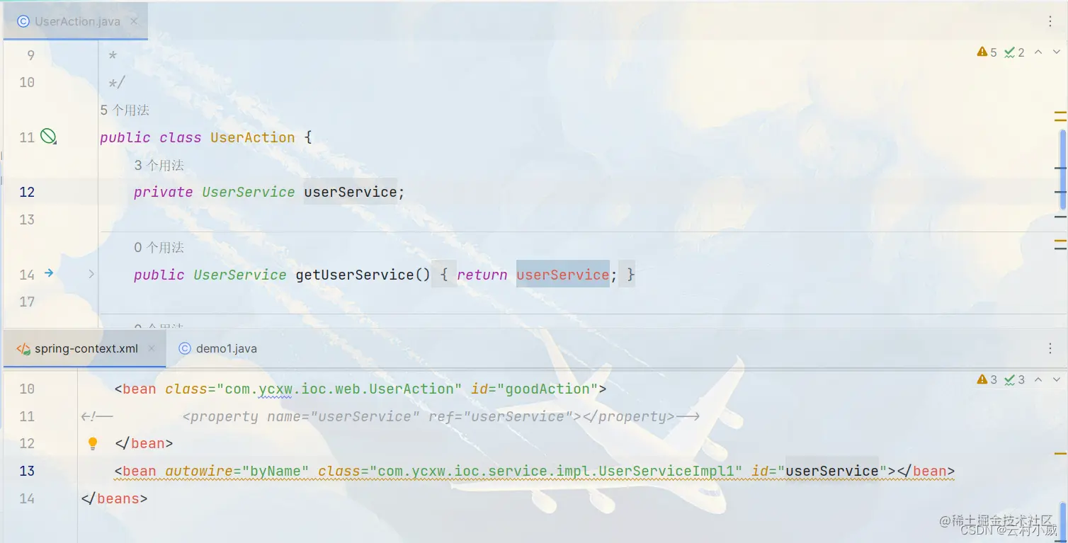 - 修改了bean注入的方式 (property)