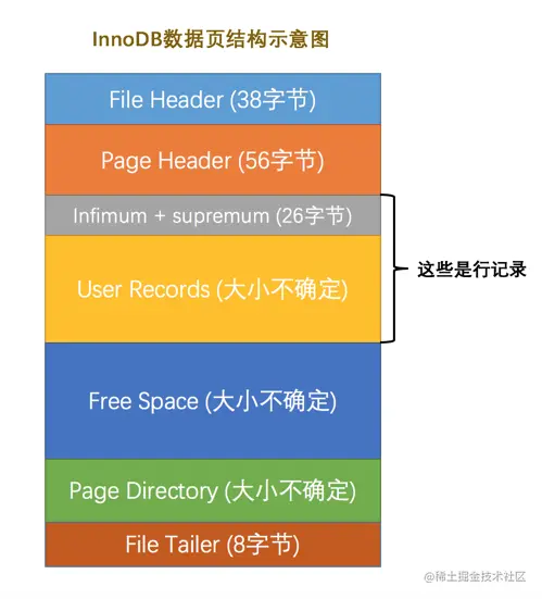 | Infimum + Supremum | 最小记录和最大记录 | 26字节 | 两个虚拟的行记录 |