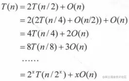 因为n=2^x,则x=logn,那么时间复杂度=2^xT(1)+xO(n)=n+lognO(n)=O(nlogn)