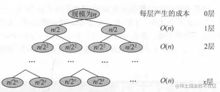 若,每层成本都一样,成本和=第一层成本x树高,时间复杂度为: