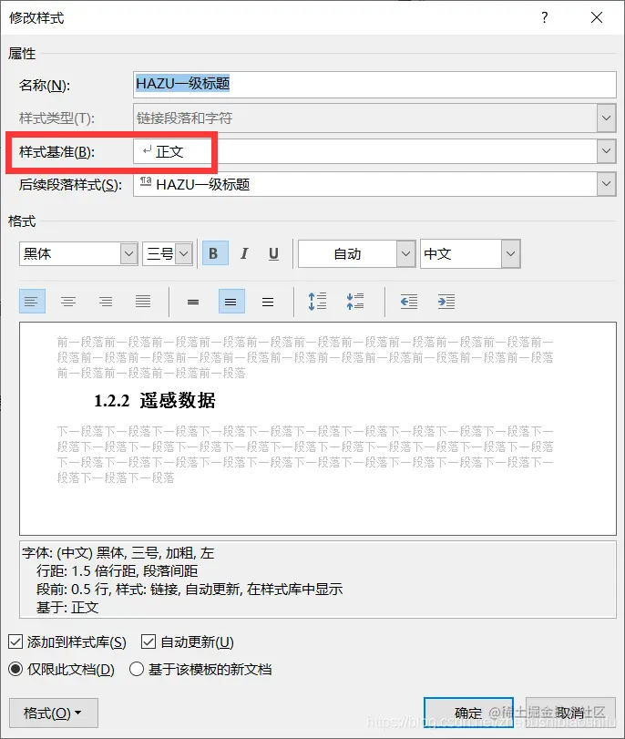 既然要新建一个样式,那我们就干脆新建一个新的、带着缩进的“正文”,这样子就不用一一修改标题的“基准样式”了;另一方面,有的时候我用方法A还不管用。因此建议大家用如下的方法。