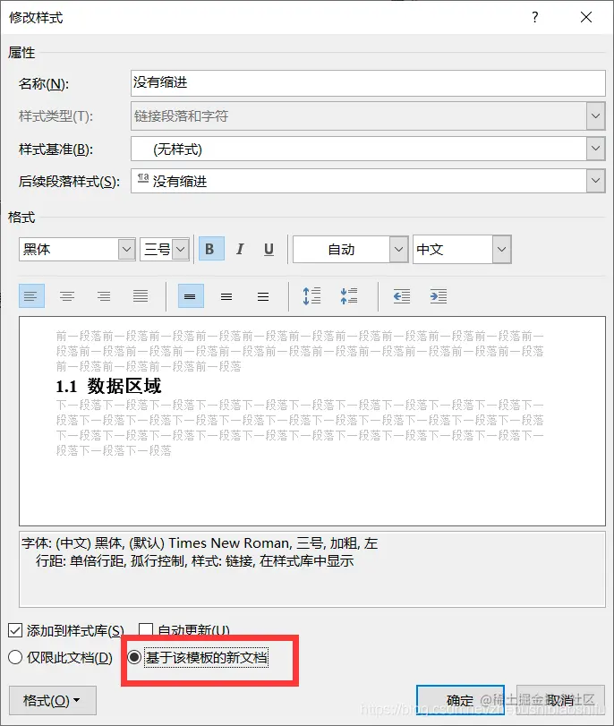 记得新建的样式的“基准样式”要选择“(无样式)”;此外保存时可以选择“基于该模板的新文档”。