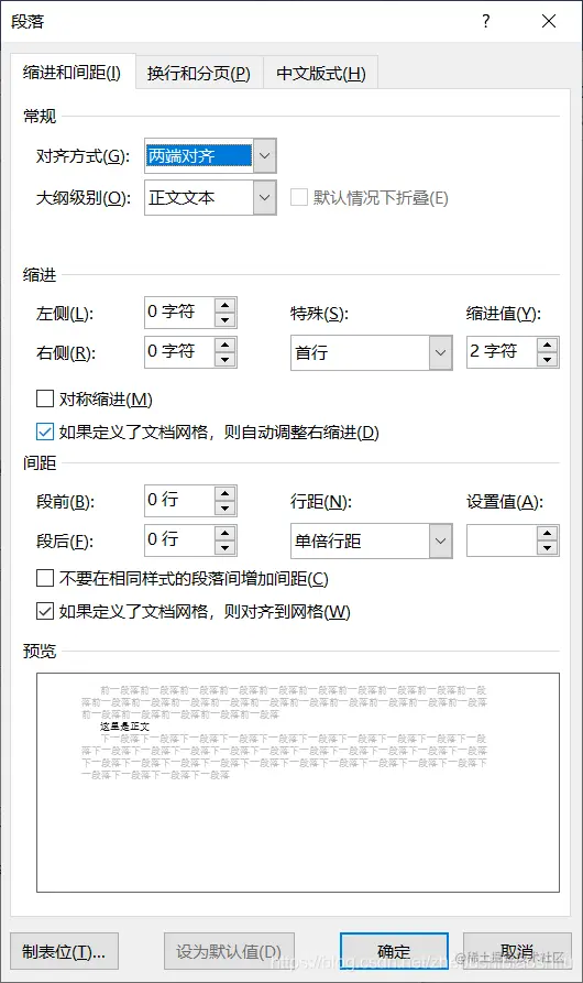 最近,在用Word时,在文章中用了几个标题样式,并在其下方加入正文。此时发现,正文默认没有首行缩进两字符,如下图。