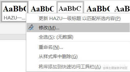 然后将一级标题的“样式基准”修改为新建的“没有缩进”。
