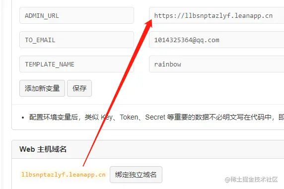 ADMIN_URL https://xxx.leanapp.cn/ [建议] Web主机二级域名,用于自动唤醒