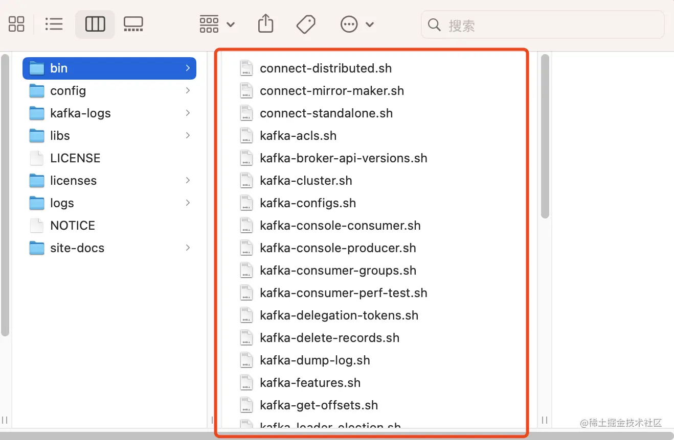 同样,在我们的安装了Kafka的bin目录下,也存在着对应这些指令的sh脚本文件, 也是它构成了我们可以非常方便的在控制台这一层面操作Kafka的可能性,如下所示: