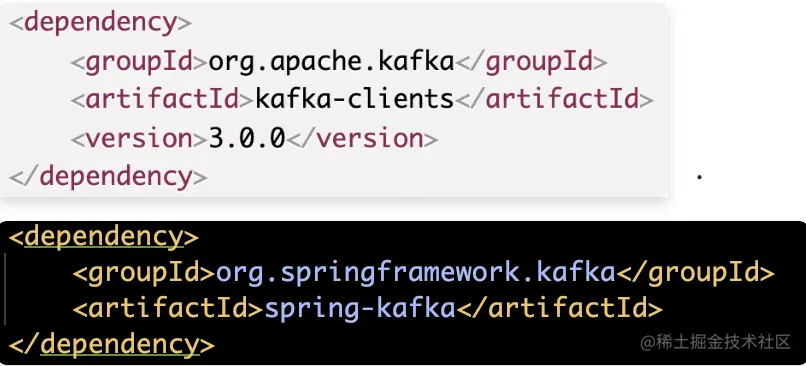 项目中引入kafka-clients的依赖(也可以直接引入spring-kafka的依赖,里面内嵌了kafka-clients)