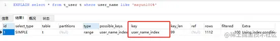再来看个使用了最左前缀的例子
