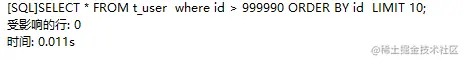 可以看到比起之前 limit 1000000时的0.218s 效率也同样提高了很多