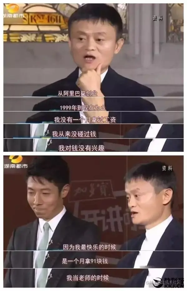 马云曾经在一个访谈节目上说,“我对钱没有兴趣…最高兴的时候就是一个月拿91块钱工资,当老师的时候。”