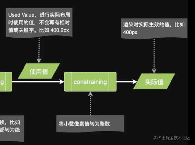 - 计算值(Computed Value):对于相对单位(如em、rem),根据父元素的字体大小进行计算,得到计算值。