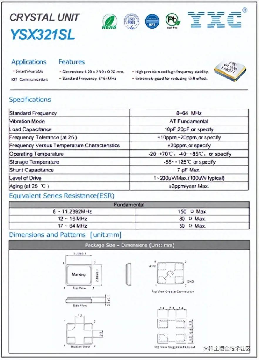 推荐采用扬兴YXC晶振-YSX321SL系列,其产品参数及优势特点如下:
