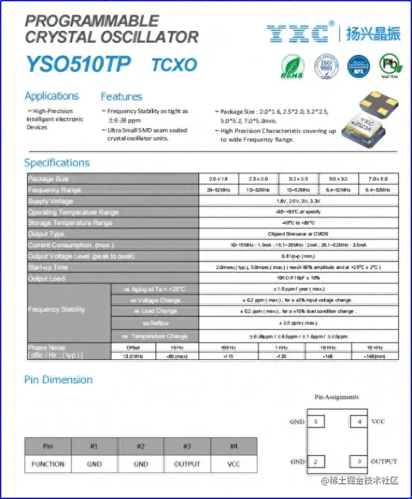 频率范围6.4MHz~52MHz可选,覆盖常用的温补晶振应用频点;