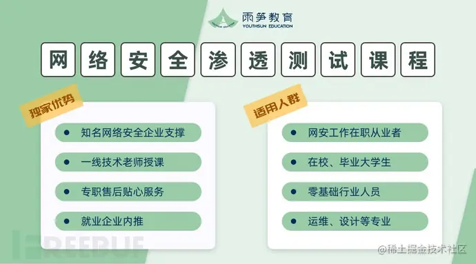 雨笋教育为响应国家网络安全宣传周的重要目标,大力培养网络安全技术人才, 将在10月18日开设线上渗透课程培训班 ,满足各位想要提升渗透技能的需求,同时加强网安人才队伍的建设。