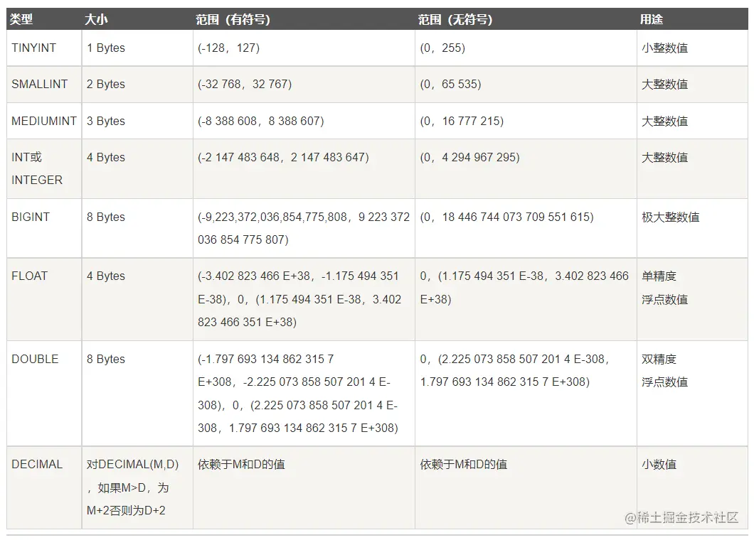下面是Mysql的数据类型,大致分为数值、日期/时间和字符串(字符)类型