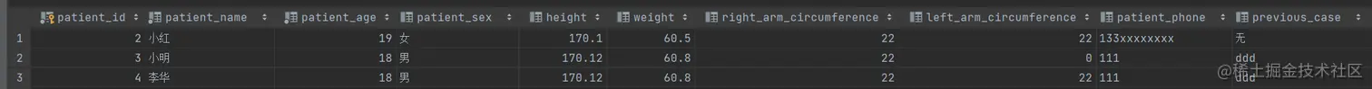 列(column)- 表中的一个字段 ,如图2中patient_id。所有表都是由一个或多个列组成的行(row)- 表中的一个记录,比如第一行,这条记录,记录下了小红的信息(病人号、姓名、年龄、身高体重等等)主键(primary key)- 一列(或一组列),其值能够唯一标识表中每一行。