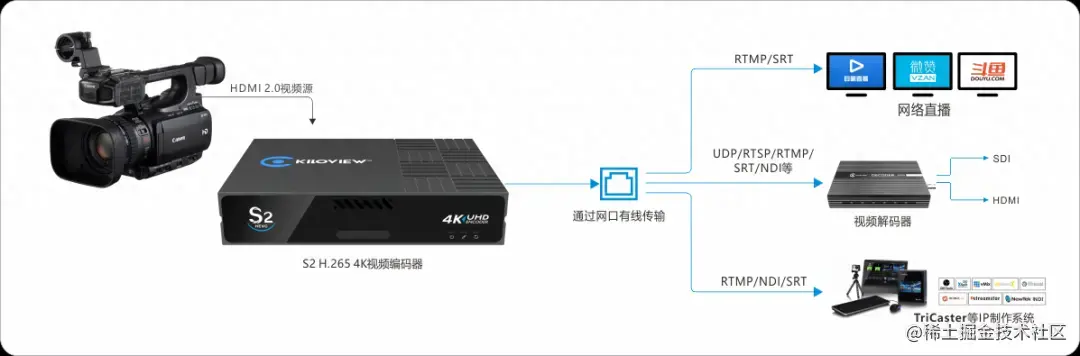 它是将模拟信号或数字信号转换为数字信号的编码设备,将输入的视音频信号源进行压缩采集并转换编码处理为机器可以识别的数字代码,编码压缩成文件或可实时网络传输的TS流数据,然后通过千兆或百兆以太网网络输出传送给下一级设备远程接收端或视频服务器使用,根据不同的压缩算法进行压缩,以达到更好的压缩效果。