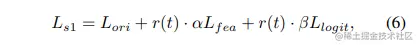其次,我们采用逻辑蒸馏损失 对学生进行第二阶段蒸馏的训练。值得注意的是,这里放弃了原始的损失 ,这个损失是基于标签值计算的。通过引入超参数 表示损失的缩放,最终第二阶段蒸馏的损失可以表示为: