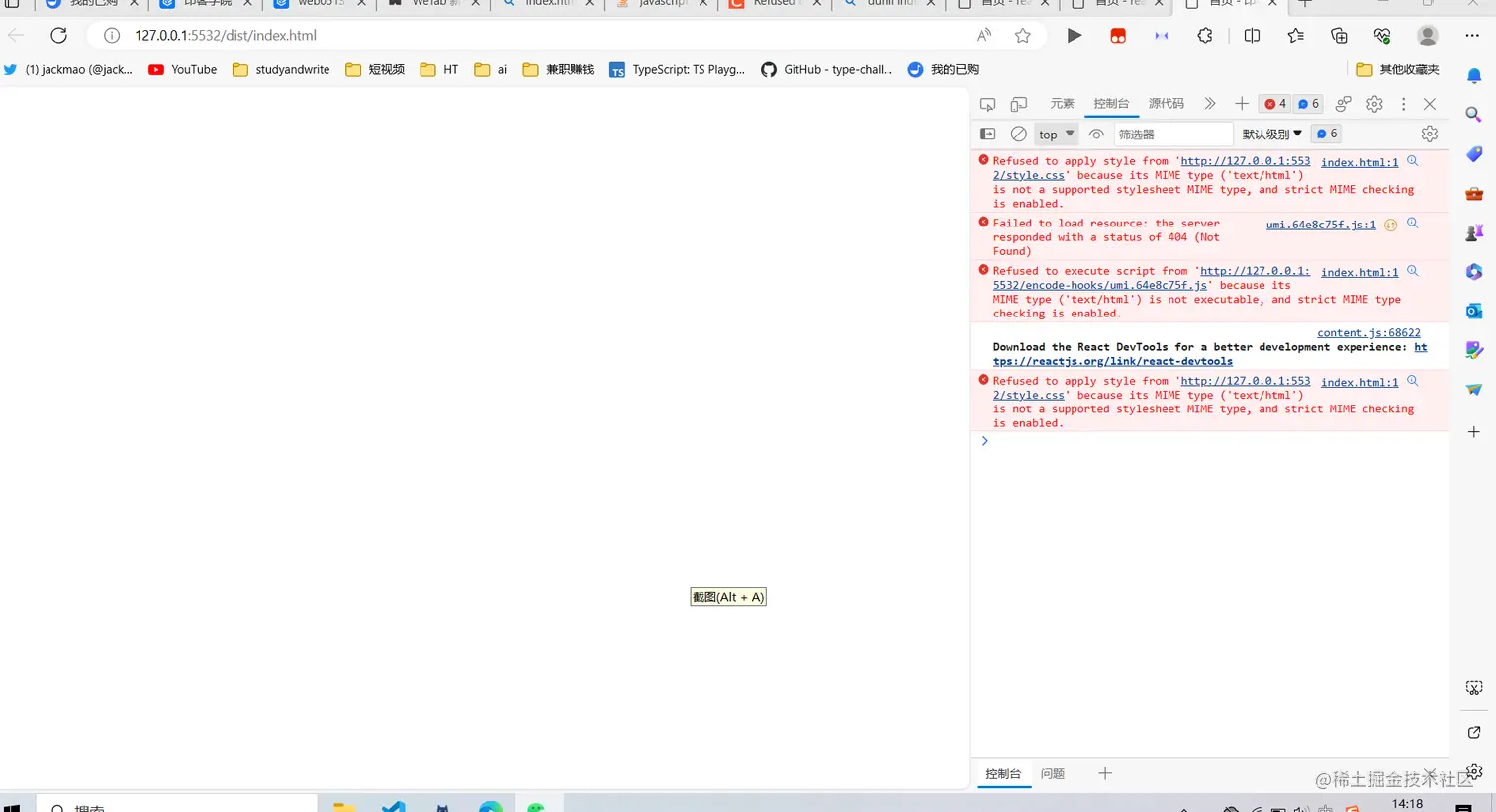 dumi 打包后本地启动不起来 零零发 2023-08-27 53 阅读1分钟 配置 base: '/', publicPath: './', history: { type: 'hash' }, hash: true, 可解决