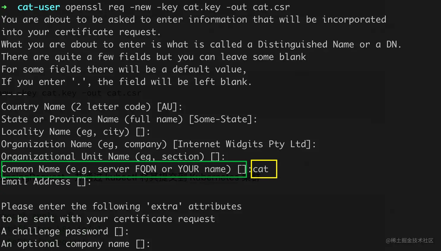 - CN (Common Name):通常是证书持有者的名称或标识符,例如域名、个人姓名等
