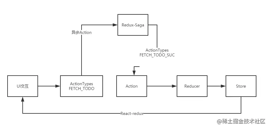 由于 Reducer 只能是纯函数(简单来说,一个函数的返回结果只依赖于它的参数,并且在执行过程里面没有副作用,我们就把这个函数叫做纯函数。),而当处于请求(Fetch)场景时,Action 需要发起异步请求,包含了副作用,所以使用借助 Redux-Saga 来处理异步 Action,处理后返回成功的同步 Action 并触发,此时是一个纯函数,最终改变 store 数据。