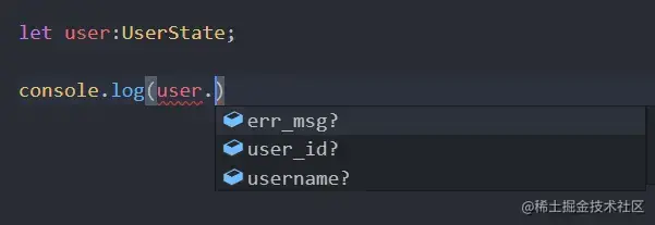 user 继承 UserState 接口,会有属性推导,而在 JS 中,我们需要自己输入 user.err_msg,繁琐易出错。
