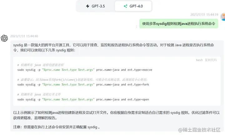 提示语:使用多条sysdig规则检测java进程执行系统命令