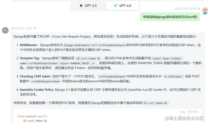 提示语:举例说明django架构是如何支持csrf的
