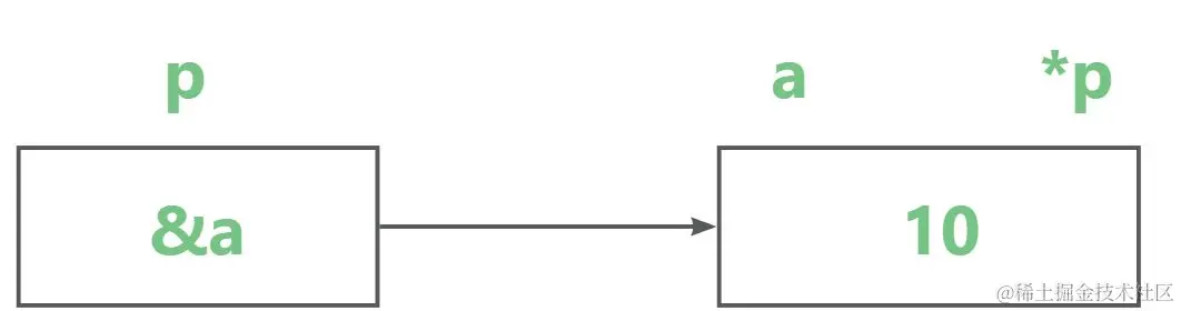 在使用指针时,画出下图一样的关系图会更好理解。p做为存储空间名里面存储地址,这个被指针指向的空间可以做间址访问,也可以用变量名直接访问。