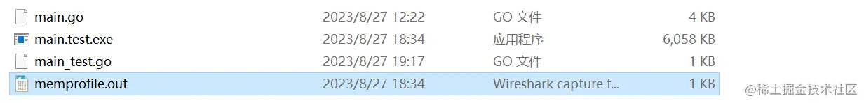 生成入下2个文件:memprofile.out和main.test.exe