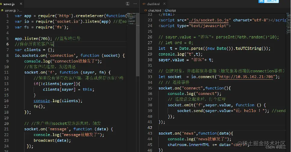 前端代码需要引入“socket.io.js”