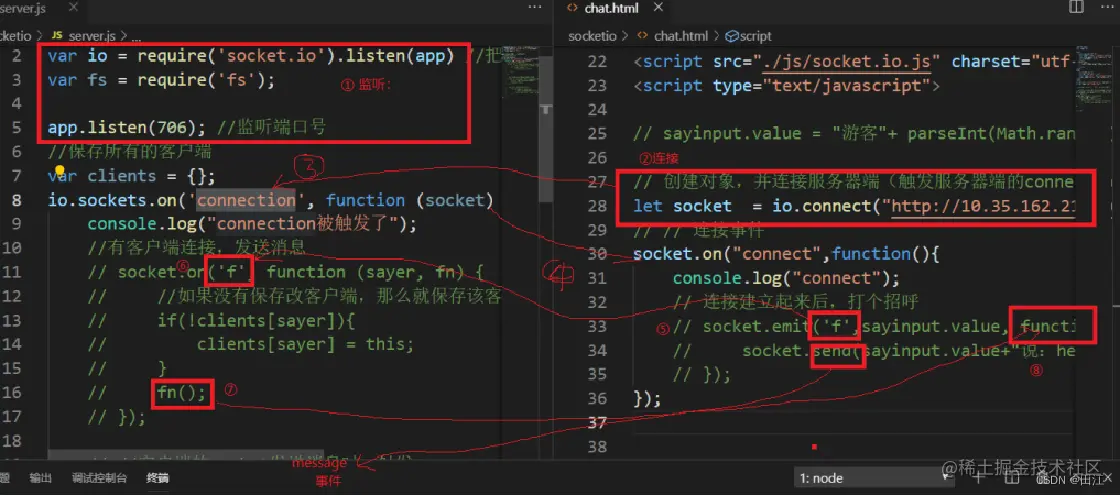 如果浏览器不支持HTML5,即没法直接使用websocket。我们还需要使用socket.io来考虑兼容性。即,如果支持HTML5,就用websocket,如果不支持HTML5就使用socket.io。Socket.io使用检测功能来判断是否建立WebSocket连接。Socket.IO还提供了一个NodeJS API