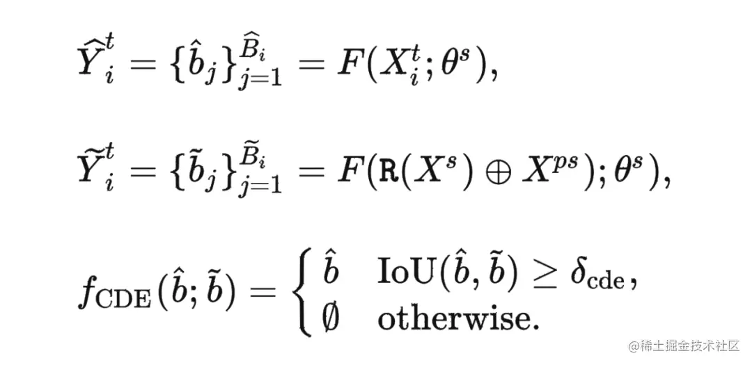 为了消除高置信度的错误伪标签并避免自训练中的错误累积,我们引入了一种跨域检查(CDE)策略来评估伪标签的可靠性。在将伪标签的目标域的物体复制到模型所熟悉的源域环境中再进行预测,我们通过目标域和源域中两个预测框之间的一致性,即交并比(Intersection-over-Union,IoU)来衡量伪标签的可靠性。