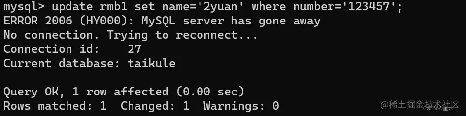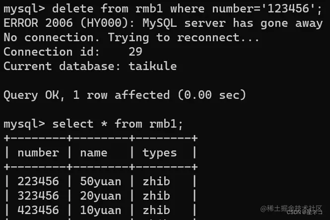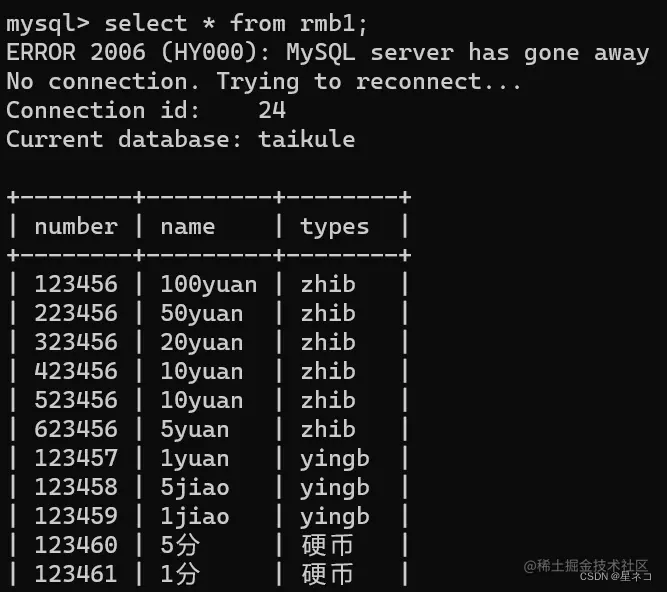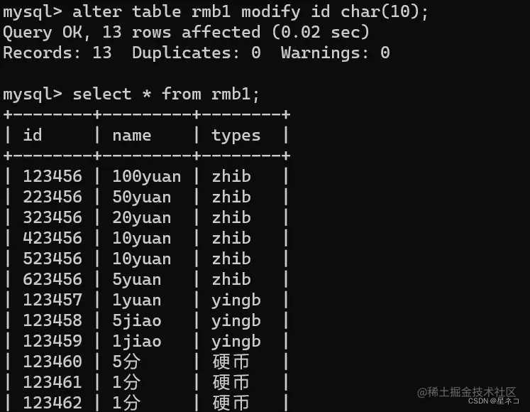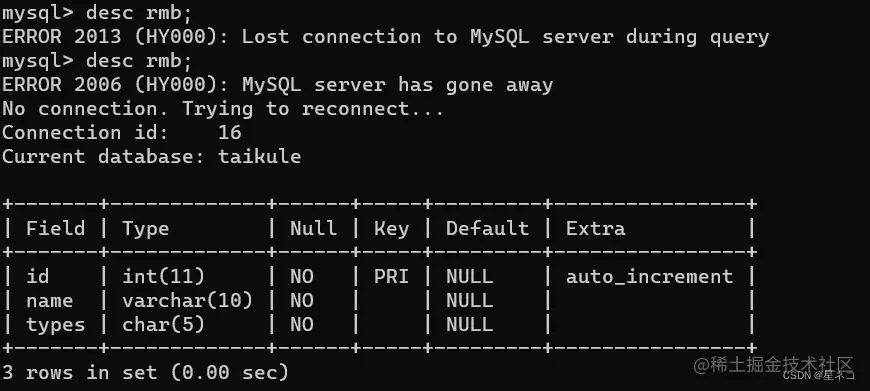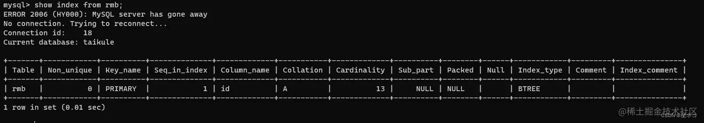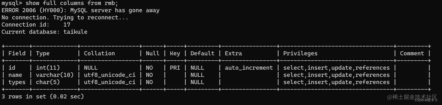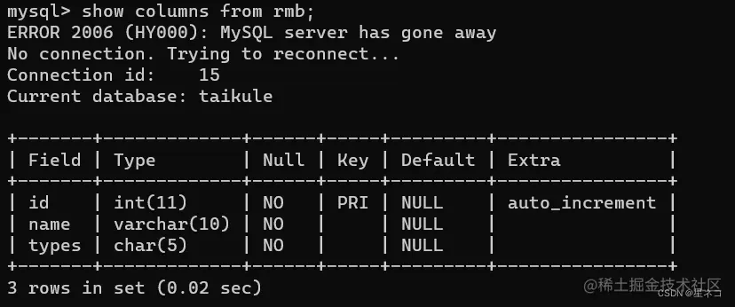 指令 show columns from 表名,从rmb 表中查看 columns 字段