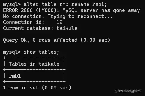 指令 Alter table 旧表名 rename 新表名;