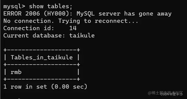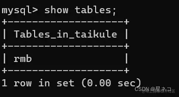 查询表名 show tables;(“s”为复数,一定要添加)