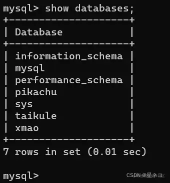 列出了mysql数据库管理系统的数据列表。(注意是databases是复数形式)