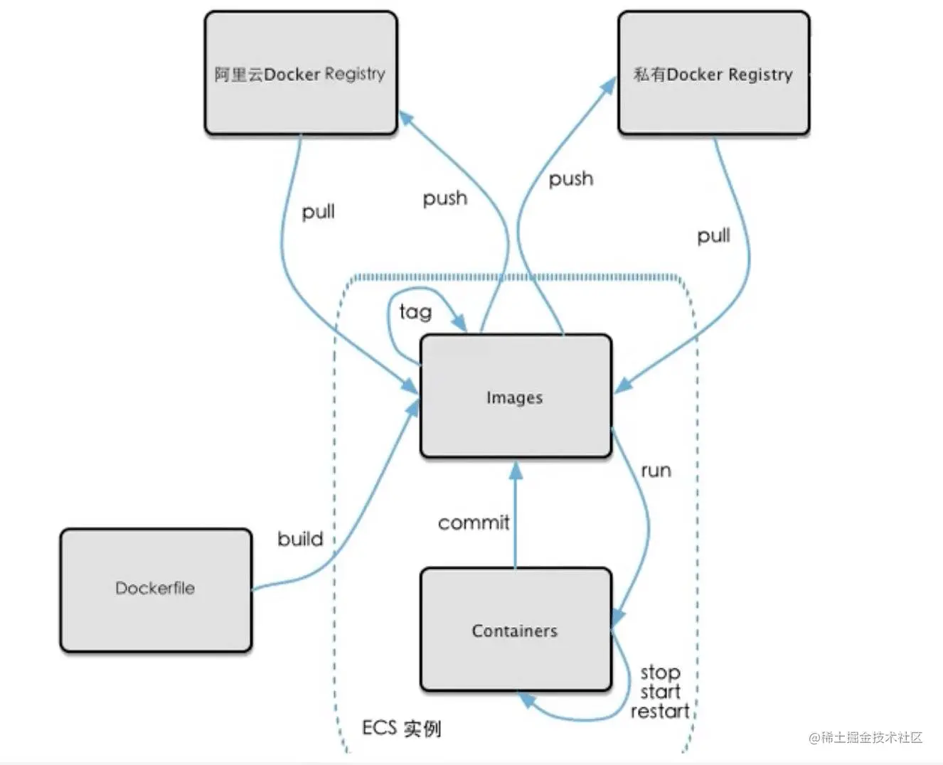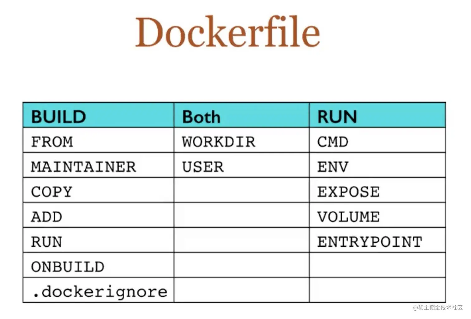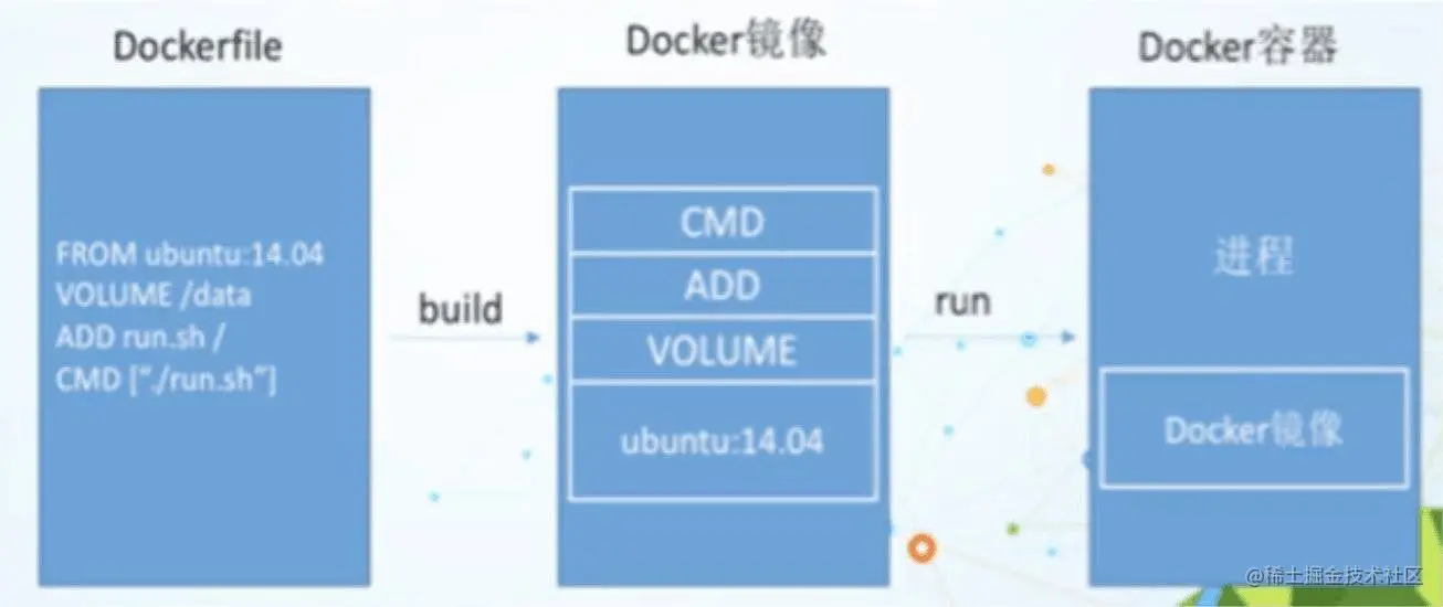 - DockerFile,需要定义一个DockerFile,DockerFile定义了进程需要的一切东西。DockerFile涉及的内容包括执行代码或者是文件、环境变量、依赖包、运行时环境、动态链接、操作系统的发行版、服务进程和内核进程(当应用程序需要和系统服务和内核进程打交道,这时需要考虑如何设计namespace的权限控制)等等。